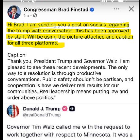 This comes just days after Brad Finstad was caught posting on social media a preplanned message from higher-ups. With all that’s going on in the State of Minnesota at the moment, clearly local GOP leaders are more worried about making their leadership happy than they are addressing the chaos created by their MAGA Agenda.